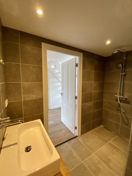 Overloop, drie slaapkamers en een luxe badkamer voorzien van GROHE regendouche, tweede toilet, handdoekdroger en wastafel. De gehele verdieping is voorzien van vloerverwarming, afzonderlijk per ruimte te regelen.