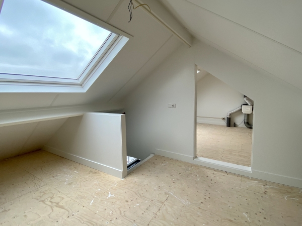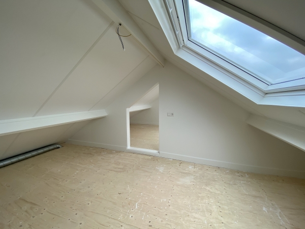 Slaap-/werkkamer met prachtig uitzicht over de perenboomgaard vanuit het grote dakraam. De tweede ruimte is toegankelijk vanaf de slaap-/werkkamer en kan eventueel gebruikt worden als vijfde slaap- of werkkamer. Deze ruimte is tevens de opstelplaats van de mechanische ventilatiebox en beschikt ook over een groot dakraam.
